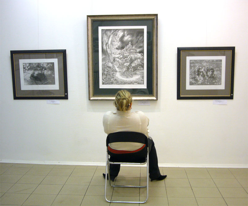 Нынешняя его выставка - не первая в столице. Еще два десятилетия назад, живя в Грузии, в Кутаиси, Гурам Доленджашвили показывал графические серии, выполненные по впечатлениям поездок на Север, на Белое море, на Камчатку и Чукотку… Немного сюрреалистичные, они тогда обращали на себя внимание неожиданностью ракурсов, сюжетов, намеренной тщательностью проработки деталей, контрастирующей с масштабами изображенного пространства, словно пронизанного космическим холодом.